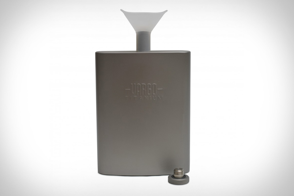 Vargo, proizvođač opreme za kampiranje, u svojoj ponudi ima čuturicu/pljosku izrađenu od titana i opremljenu integriranim lijevkom.